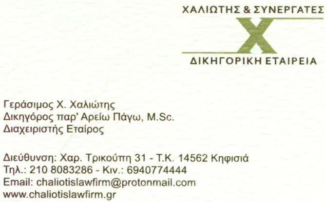 ΧΑΛΙΩΤΗΣ ΚΑΙ ΣΥΝΕΡΓΑΤΕΣ ΔΙΚΗΓΟΡΙΚΗ ΕΤΑΙΡΙΑ - ΧΑΛΙΩΤΗΣ ΓΕΡΑΣΙΜΟΣ