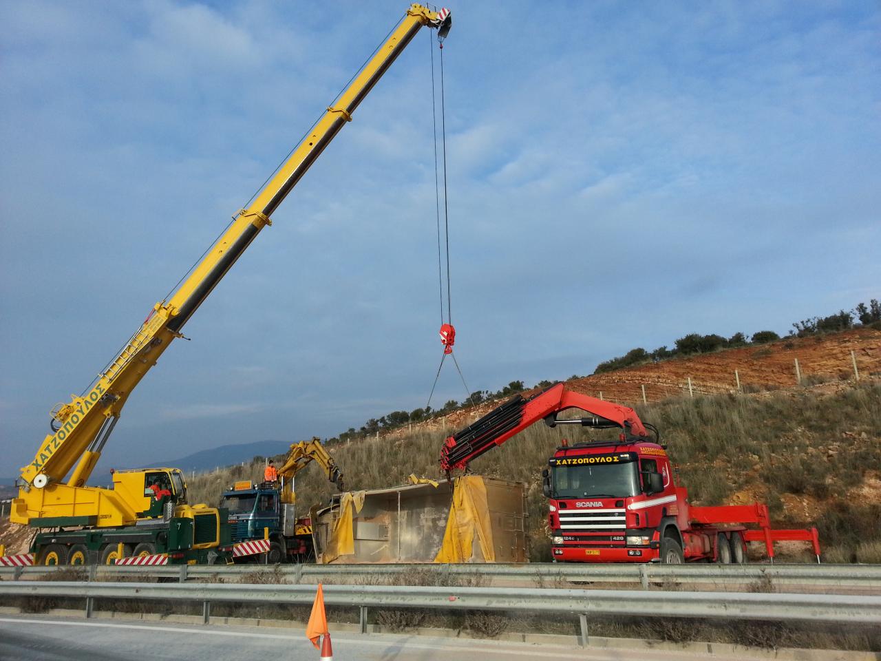 Ο εξοπλισμός μας περιλαμβάνει τηλεσκοπικούς και εργοταξιακούςγερανούς έως 500 ton, παπαγαλάκια έως 60 t, καλαθοφόρα έως 52 m,περονοφόρα έως 40 ton, φορτηγά Δ.Χ., ρυμούλκες βαρέου τύπου έως 120ton, εξέδρες εργασίας έως 18m,ρυμουλκήσεις φορτηγών - λεωφορείων, χωματουργικά και εκχιονιστικά μηχανήματα.